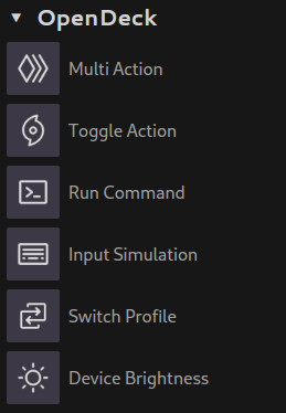 Für die Plugins habe ich mich ehrlich gesagt nicht groß interessiert, da ich die meisten Aktionen, die ich umsetzen wollte, direkt als Shell-Commands implementieren wollte. Dafür bringt OpenDeck per default ein paar Standard-Funktionen mit: